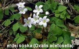 Az erdei sóska (Oxalis corniculata) nem sóskaféle (Rumex). Az íze sokkal gyengébb, kellemes és savanyú. A világoszöld lóhere alakú leveleit kiemelik a tetszetős sárga virágai. Ezek a legmutatósabb gyomok, amik a legtöbb kert szélén nőnek. Hidegebb éghajlaton az erdei sóska (Oxalis acetosella) virágai kékeslilás színűek.