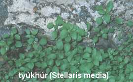 A tyúkhúr (Stellaria media) sokkal pompásabb ízre és szerkezetre mint a legtöbb gyomnövény, növekedésének bármelyik szakaszában felhasználható nyersen is. Ha a picike hajtásokból kihajtanak a "húrok" azokat levághatjuk.