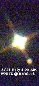 All planets in the solar system revolve around the Sun counterclockwise, so the Retrograde orbit of Planet X is clockwise. Based on Photos of the Planet X complex in August, it would appear that either the retrograde orbit of Planet X reversed or the Earth stopped in its orbit and reversed. The latter is more likely, as Planet X outweighs Earth by 23 times, and is 4 times the diameter of Earth. The photos below are from Italy and the American Southwest, comparable lattitudes and times of day. They show great consistency when tracking the White Persona, considered to be the true location of Planet X in the photos. The retrograde orbit of Planet X seems to have moved appropriately from the 5 to 7 o'clock position between Aug 11 to Aug 12, then reverses back to the 5 o'clock position by Aug 14, continuing backward to the 1 o'clock position by Aug 17-19. This seeming reversal as viewed from Earth would also occur if the Earth itself had slowed to a stop and reversed its orbit, as the Solstice crop circle implied it would.