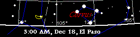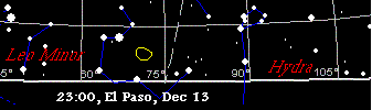 Early this morning, Thursday, in El Paso, the moonrise was way South. Last night the azimuth was about 110° . I usually stand in the same location. Dec 14-15 the moon came if way North of the street light pole. This morning it came up way South of the pole. I think Earth bumped up in its ecliptic yesterday. [Note: Moon rise at 4:00 AM per Skymap should have been 97°]