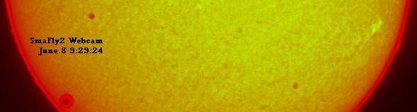 There are three anomalous objects in this one. One at 11 o clock, One at 2 o clock, One at 7 o clock, I see two objects and they are moving! I save the pictures, and then changed them to reflect like a negative, and there is indeed something there. [and from another source] Did Venus transit? What does the word ‘transit’ mean? It means a concluded and completed passage, in one side, entirely out the other, and nothing half way about it. Venus went half way, and is not proceeding past the Sun on its orbit. How do we know? We and others pushed it there, into position despite its reluctance, and properly so as to be viewed from Earth. But why? Because we wanted the public to see it, wanted the observation of other anomalies around the Sun to become the buzz of amateurs. Like the Moon off orbit, and the Second Sun dramatically confusing those viewing it with the real Sun they see moments later, this phenomena will not go away, nor will the attention it gains diminish because the establishment ignores it. The tail of Planet X, the moon swirls, the increasing fireballs streaking through the atmosphere, all are here to stay while the situation only worsens. Those with scopes and solar filters, seeing what puzzled them on June 8, will go back for another peek. [Note: new ZetaTalk: Bait and Switch.]