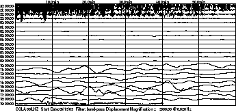 After the Dusk Tug (first chart) at end of June 15, and then (below chart) after the Dark Side Global Quake at end of June 16, increasing signs of magma stress was evident. The charts below cover a 36 hour period. Where the South Pole and Kamchatka show continuous stress, the other locations are exhibiting this only recently, or exhibiting more stress at that time than formerly. Bobbling plates indicate surging magma under the crust, and spiking plate movement indicates stretch and release in the stretch zones. The stress points indicate fault lines where compression or stretching are occurring.