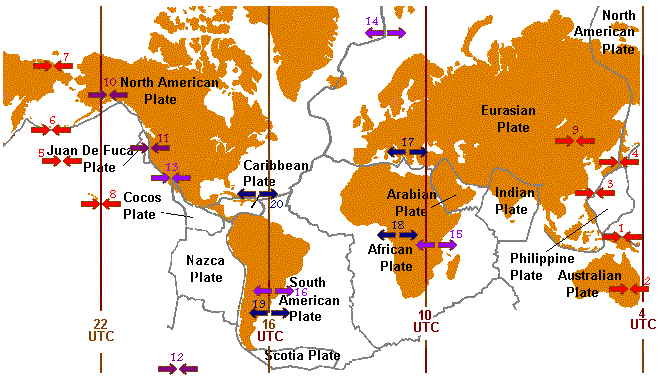 On June 27-28, stress points indicating increasing pressure in the N. Pacific moving across from NE Siberia and China to the West Coast of the US. with stretch on the eastern side of the Atlantic Rift. As with the stress points indicated on June 25, resulting in a Tug Points on June 26, again the stress points showed key places where the Global Quake occurred when the Atlantic Rift faced Planet X. Note where this Global Quake rolled, indicating a pileup along the western edge of the Pacific Rim, over the the West Coast of N. America, thense to the stretch zone west of the Atlantic Rift, and finally to the stretch zone east of the Atlantic Rift. The globe is being restrained from rotating. The pileup started (15:30 UTC) in New Guinea; thense (15:40 UTC) to Australia; thense (15:50 UTC) New Zealand, Taiwan, Japan, Korea, and Midway Isl.; thense (16:00 UTC) to the Aleutian Isl., Bering Straits, Hawaii, and Mongolia; thense (16:10 UTC) to Alaska, Oregon, and Antartica; thense (16:20 UTC) to Arizona, Brazil, Norway, and Kenya; thense (16:30 UTC) to Argentina, Armenia, and Gabon; thense (16:40 UTC) to Puerto Rico.