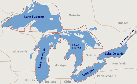 The Seaway in essence runs along this boundary, except for Lake Erie which is south of the