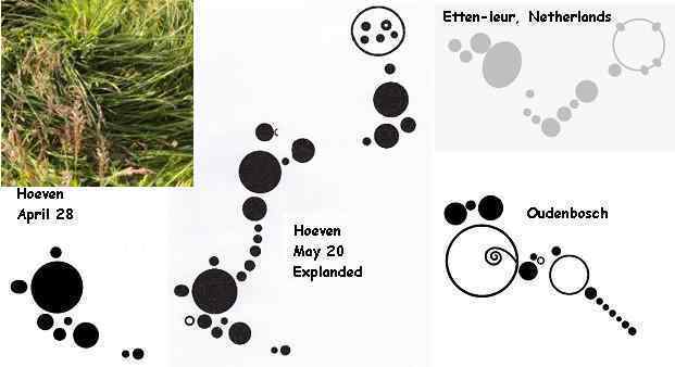 ZetaTalk Interpretation 6/4/2011: The Netherlands has been host to a series of unique crop circles, laid by makers intent upon relaying a heretofore unstated message. It is hoped that by clustering these circles in one location, in a country normally not the center of focus during the crop circle season, the message may get better focus and attention. The progression at Hoeven shows the status of the 270° roll, with April 28 being the current status.