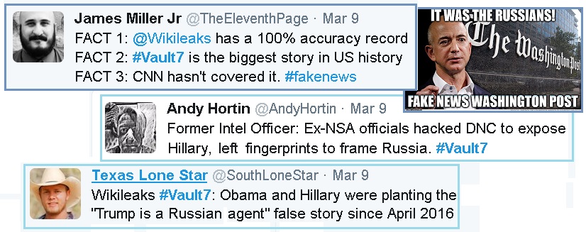 The Vault 7 release on March 7, 2017 included admissions from the CIA’s own files that they could easily spoof a hacker’s identity, making it seem a hack had been done by the Russians when in fact it had been done by others. Remember all those hacks of the DNC and Podesta email files, supposedly done by the Russians? We said at the time that it was not the Russians. The Russians are not that sloppy. The Hillary hugging Washington Post and CNN and even Obama shouted out that it was the Russians. All lies, now revealed. But there is more to come!