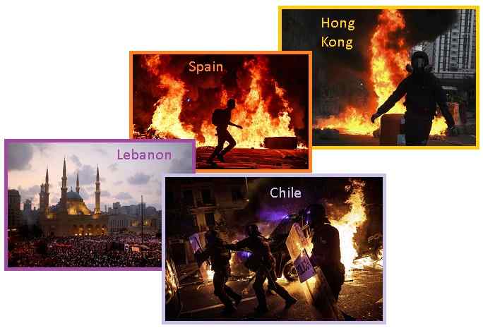 Clashes hit Chile, Hong Kong, Lebanon and Barcelona