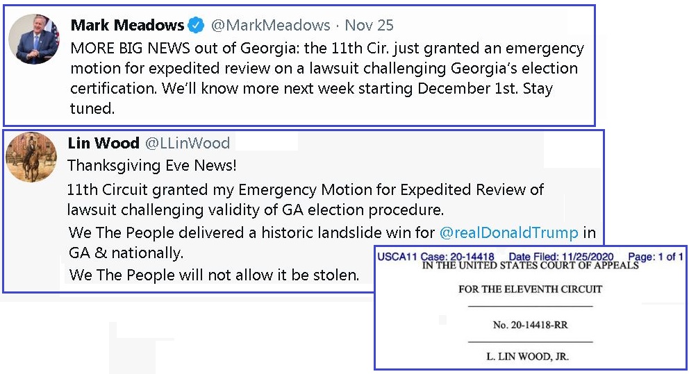 Georgia is also in yet another recount, as the prior recounts were either a canvas of the fraud or included illegal ballots. This latest recount is an audit. Lin Wood has filed a stay with the Circuit Court in Georgia, regarding the certification that the Governor and Secretary of State in Georgia are attempting to do. This issue might also be elevated to SCOTUS.