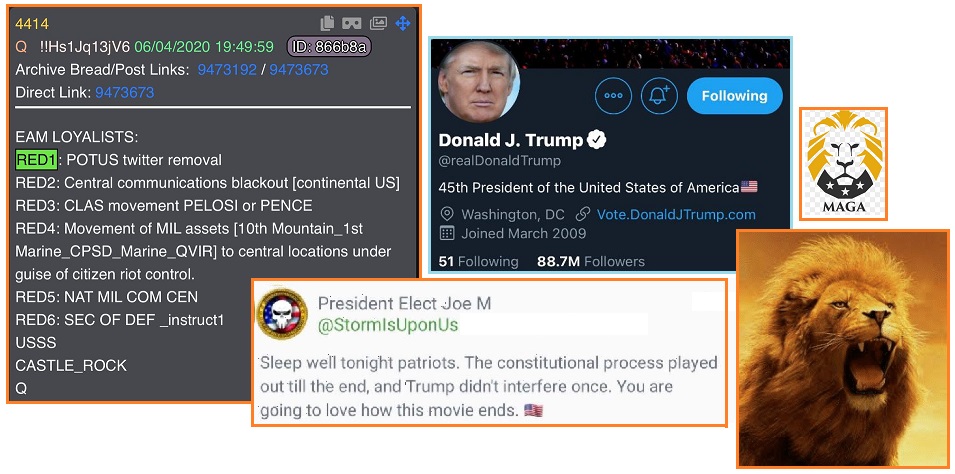 Option 6 lay in the hands of the Electoral College. And though the Swing State legislators provided dual slates of Electors, all remained faithful to their state’s certification and opted for Biden. Option 7 is for the House to vote. This is in the Constitution so has a solid basis, but requires SCOTUS to rule. Option 8 is to take the case to the Supreme Court, but SCOTUS cannot rule without evidence presented in the lower courts. We are thus left with two options: President Trump invoking the Insurrection Act or the Biden Double conceding. Q warned that during a coup attempt, the first move would be to lock Trump out of his twitter account. This has now happened.