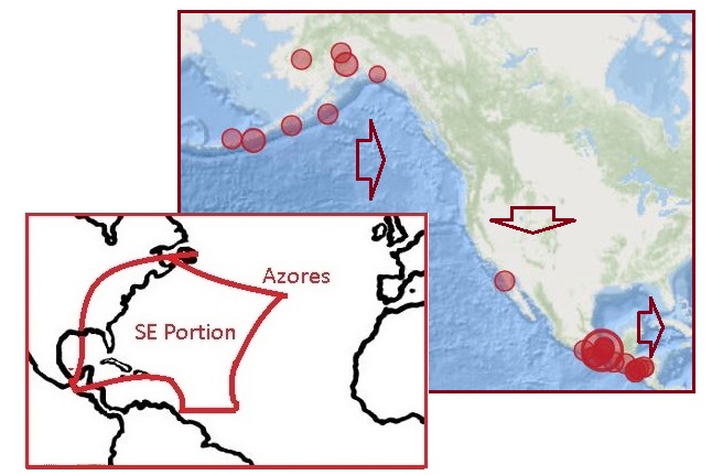 What was also notable on October 7 is the Mainland dropping and shifting West more rapidly. October 7 is the day after we had a snap of the Panama Platelet. There is also another large quake at the Isthmus where the Toe of the SE Portion is connected. Note that a series of quakes along the Aleutian Islands shows that the N Pacific is compressing due to this shift to the West of the Mainland.