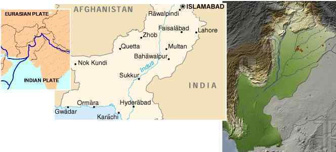 As the continent of India is pushed steadily down and under the Himalayas, lands in Pakistan that lie on the Indo-Australian Plate will participate. The plate border as it transverses Pakistan reflects this, with the Indus Valley on the Indo-Australian Plate being lowland, and the highlands to the west on the Eurasian Plate. Lahore and eastern Pakistan can thus expect to steadily sink up until the time of the Pole Shift, when it will share the dive that India itself will experience.
