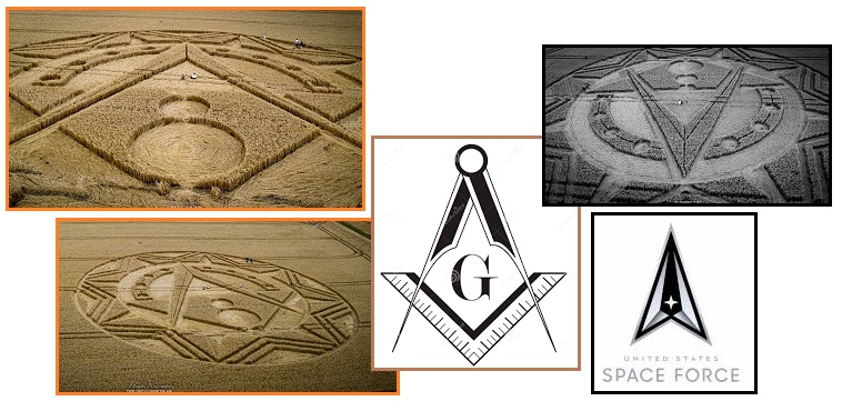 This Crop Circle design seems to include the Masonic Square and Compass or perhaps the Space Force symbol. But neither of these symbols contain the 180 degree swath overhead. In that a Severe Wobble is in process, and 180 degree swings can occur during a Severe Wobble, what is being implied? The Masonic design implies a top and bottom, which can relate to the North and South poles. Thus this design is relaying to mankind that the globe may lie on its side, with the N Pole pointing to the East or West or places in between. Masonic symbolism is being used to grab attention and encourage discussion. The wobble will be getting worse.