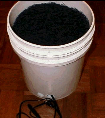 If you have or are using some other type of filter material, the general idea is to gradually get finer as you go down in the bucket. Coarse rags or cloth could be used as filter material if that were all that was available. From time to time check the air flow to make sure you can feel a decent amount of air coming out of the holes at the bottom. Use a coarseness of the filter material to insure a good air flow. The fan may heat up if air flow is limited too much. If you want to use fine filter material then find a fan that pulls a good pressure drop.