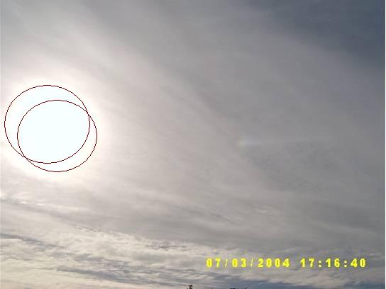 - This appears to be a sundog to the right, but the photo has captured an Occulted Sun, lopsided and not circular. Per reports, there is an
