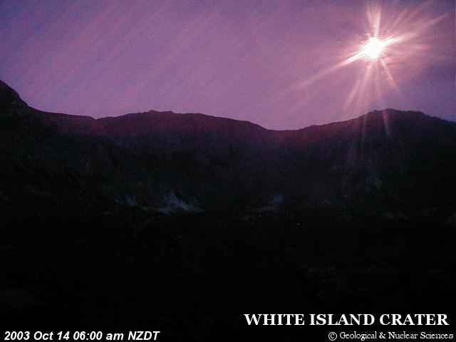 Planet X approaches from below the Ecliptic, moving in a retrograde motion. When viewed from an extreme Southern Hemisphere location, New Zealand, this part of the sky is visible in the night sky. New Zealand is in early Spring in October, 2003. Thus on Oct 14, just ahead of dawn at 6:00 AM, the spot where Planet X is currently viewed is well overhead in the East, along the Ecliptic. Where the webcam faces West, there is evidence that Planet X has been tugging at the S Pole, so that the Earth is Tilting, then righting itself, so the location of Planet X comes within view on occasion in New Zealand. This showed up previously on Sep 12. [Note: see Moon Theory, that this object is the Moon.]