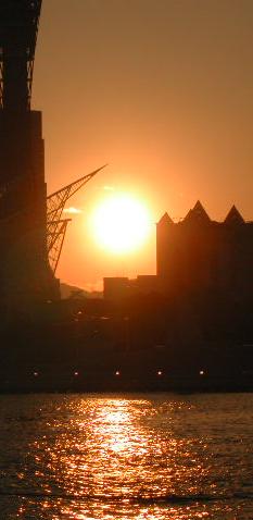- This photo is remarkable as it has a double reflection, and shows two suns there, not a round ball. The slanted reflections are from a second sun source, the first source creating a reflection on the water. The Sun is dented as the occulting is not perfect. A short while later, the suns merge, creating a slightly elongated sun.
